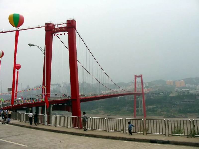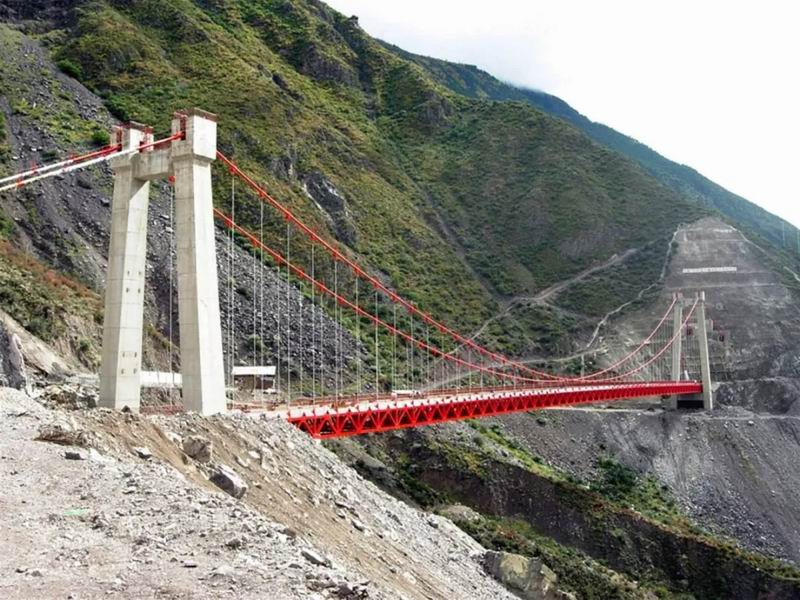 改革開放以來,我廳公路設(shè)計院結(jié)合山區(qū)地形地質(zhì)特點(diǎn)設(shè)計建造了多座懸索橋,如主跨450m空間主纜體系的重慶豐都長江大橋,主跨560m鋼管混凝土主桁的重慶忠縣長江大橋,主跨340m獨(dú)立制造單元安裝的西藏角龍壩大橋,主跨820m采用預(yù)應(yīng)力巖錨的四川宜賓南溪長江大橋,主跨1100m高地震烈度和峽谷風(fēng)場環(huán)境的雅康高速瀘定大渡河大橋。