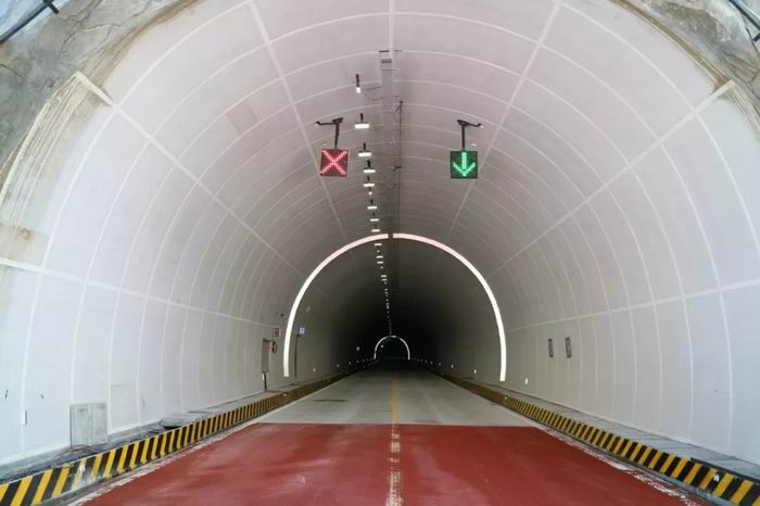 二、創(chuàng)新性提出“保暖內(nèi)衣+長衣袖式”隧道結(jié)構(gòu)綜合防凍技術(shù),并在隧道洞口設(shè)立了防雪透光棚,既保證隧道洞口防凍、防雪,又有效緩解了駕乘人員的“黑白洞”效應(yīng)。