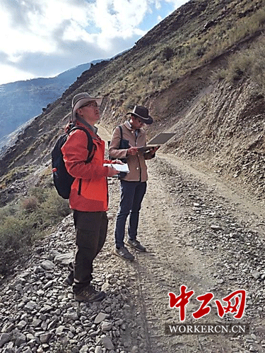 又是下雨的一天,不巧的是今天踏勘的路段又是海拔超過了4000米的一段。高海拔伴隨著雨水,讓冷氣穿透了我們的厚外套。最為麻煩的是,本來是一只手拿手圖,另一只手拿筆往上寫內(nèi)容,現(xiàn)在要騰出一只手拿傘,就拿不穩(wěn)手圖了。同事們只好在要寫東西的時候互相幫忙打傘,才能保證寫上的字不會被雨水打濕。下過雨的土路走起來深一腳淺一腳,稍不留意鞋子就會進水,只有通過跑跑跳跳才能活動一下凍僵的腳。在雨后的山上看到了巨大的彩虹,也許是這個天氣送給我們最大的驚喜了吧。