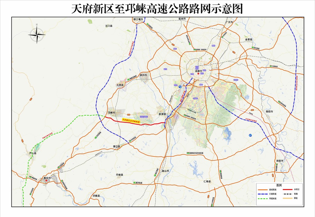 天邛高速起于新津縣鄧雙鎮(zhèn),接成樂高速擴容項目,經(jīng)新津縣永商鎮(zhèn)、邛崍市羊安鎮(zhèn)、固驛鎮(zhèn)、臨邛鎮(zhèn),止于邛崍市孔明鄉(xiāng),與邛名高速相接,路線全長約42公里,項目估算總投資約87億元,建設(shè)工期3年。