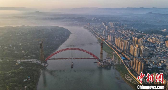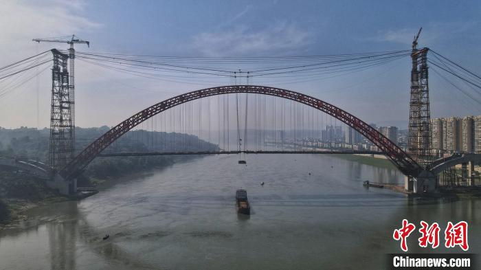 四川合江長江公路大橋主梁合龍 系世界最大跨徑飛燕式鋼管混凝土系桿拱橋