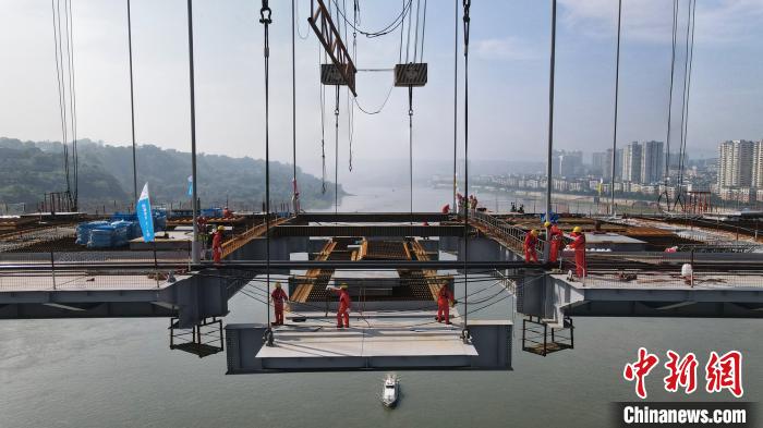 圖為大橋吊裝現(xiàn)場?!⒅铱?攝