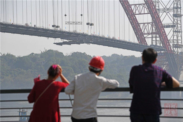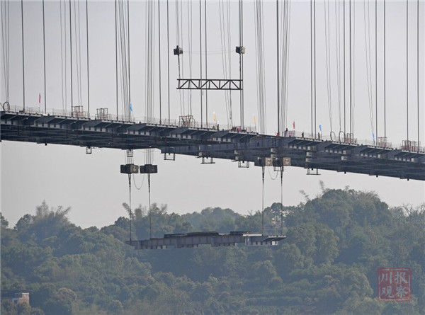 今天上午11時(shí)許,隨著最后一段橋面梁的吊裝到位,四川合江長(zhǎng)江公路大橋的主梁成功合龍,大橋主體工程關(guān)鍵節(jié)點(diǎn)完成建設(shè),為2020年底建成通車奠定基礎(chǔ)。