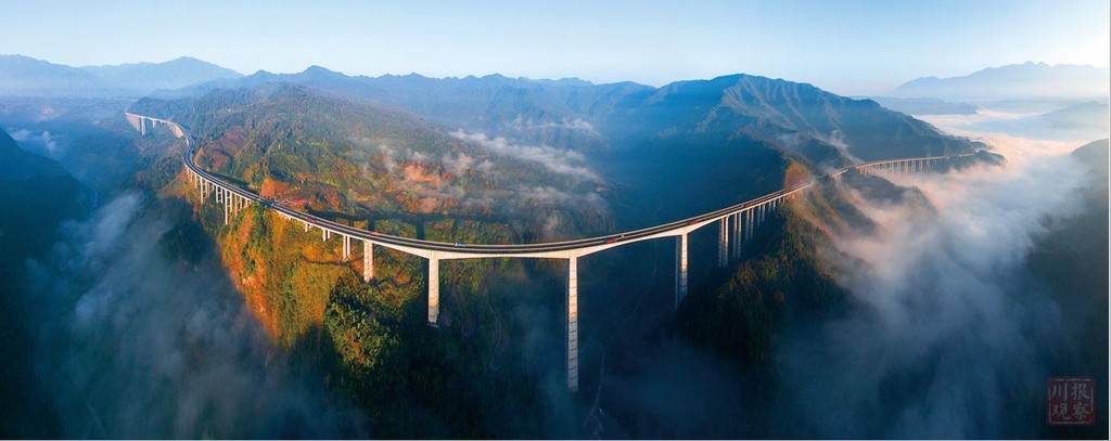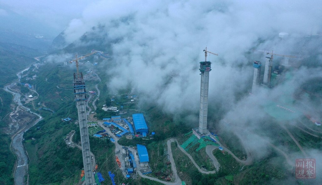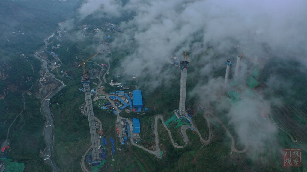 為了讓大橋順利跨越溝谷,3個高度超過100米的墩柱,采用了四川公路設(shè)計(jì)院自創(chuàng)的鋼管混凝土組合格構(gòu)墩——連續(xù)鋼構(gòu)世界第一高墩雅西高速臘八斤大橋的“同款”,減少自重的同時(shí)又增加了承載力度。
