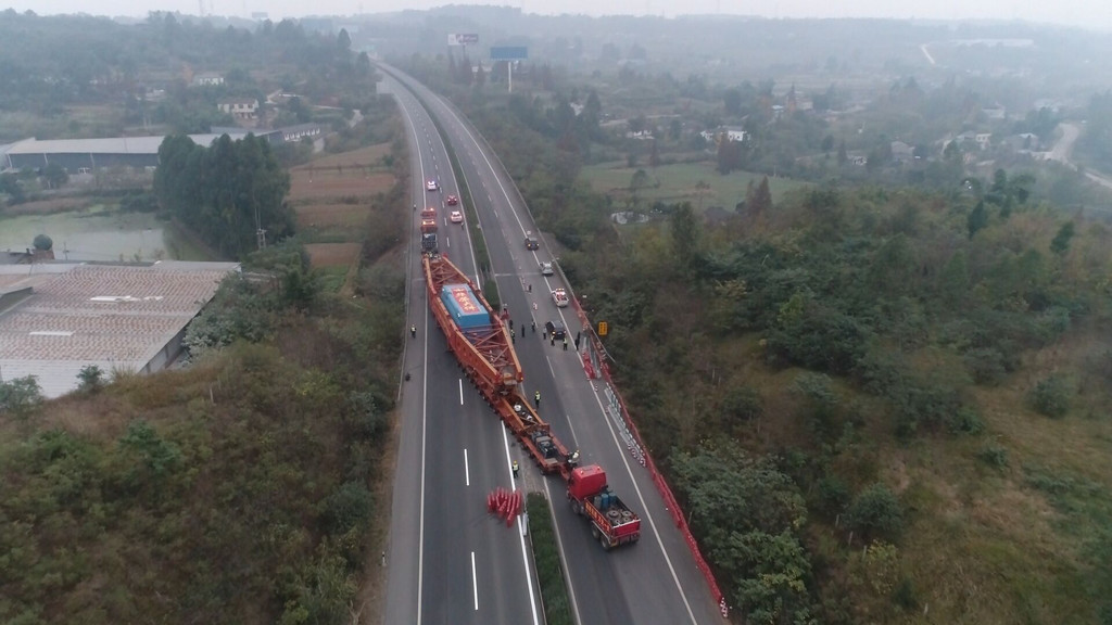 該設(shè)備是天明項目發(fā)電機2號定子,在德陽東電生產(chǎn)后,于11月16日裝車后起運,經(jīng)國道350、S1成綿復(fù)線、G93成渝環(huán)線、G5京昆、省道302等抵達(dá)江油,行程187公里。