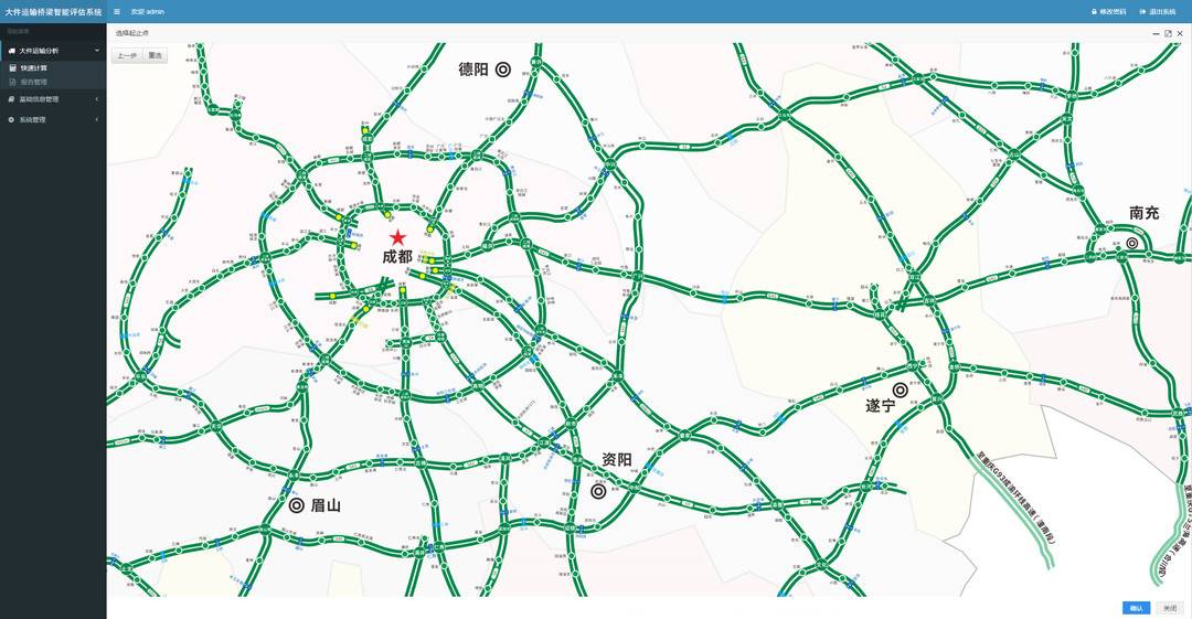 同時(shí),該系統(tǒng)在現(xiàn)有數(shù)據(jù)庫的基礎(chǔ)上,綜合考慮運(yùn)輸成本和通過性評(píng)價(jià)結(jié)果等因素,可利用路網(wǎng)拓?fù)浣Y(jié)構(gòu)實(shí)現(xiàn)運(yùn)輸路線的自動(dòng)規(guī)劃,實(shí)現(xiàn)大件運(yùn)輸選線的智能化。