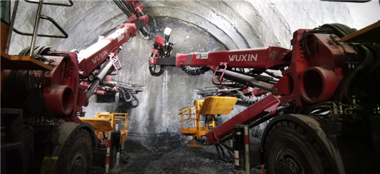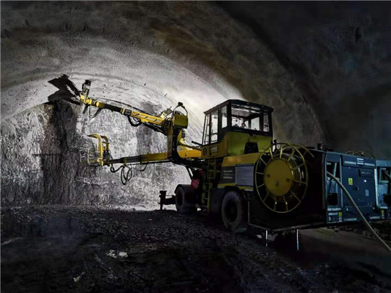 三臂鑿巖臺車開鑿炮眼。四川公路設計院供圖