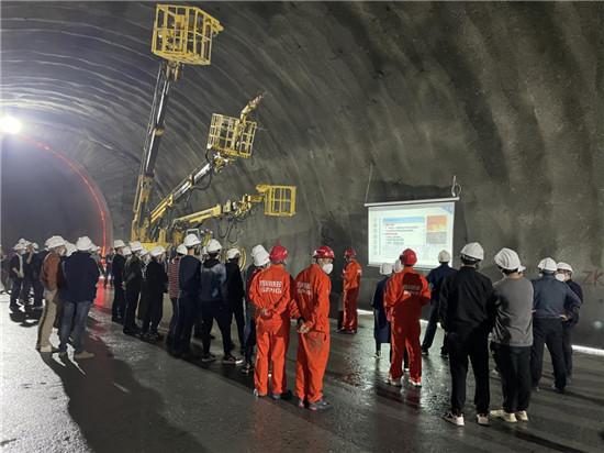 隧道技術人員現(xiàn)場觀摩大峽谷隧道建設。四川公路設計院供圖