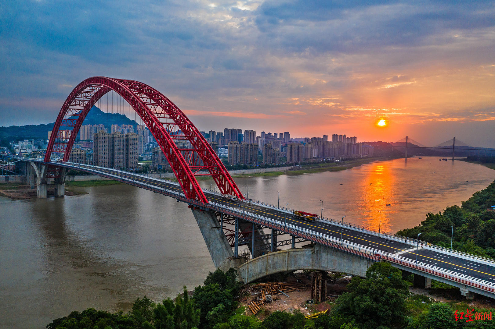 6月25日,紅星新聞?dòng)浾邚乃拇ㄊ〗煌ㄟ\(yùn)輸廳了解到,今日上午,世界最大跨徑飛燕式鋼管混凝土系桿拱橋——合江長(zhǎng)江公路大橋正式在四川瀘州建成通車。