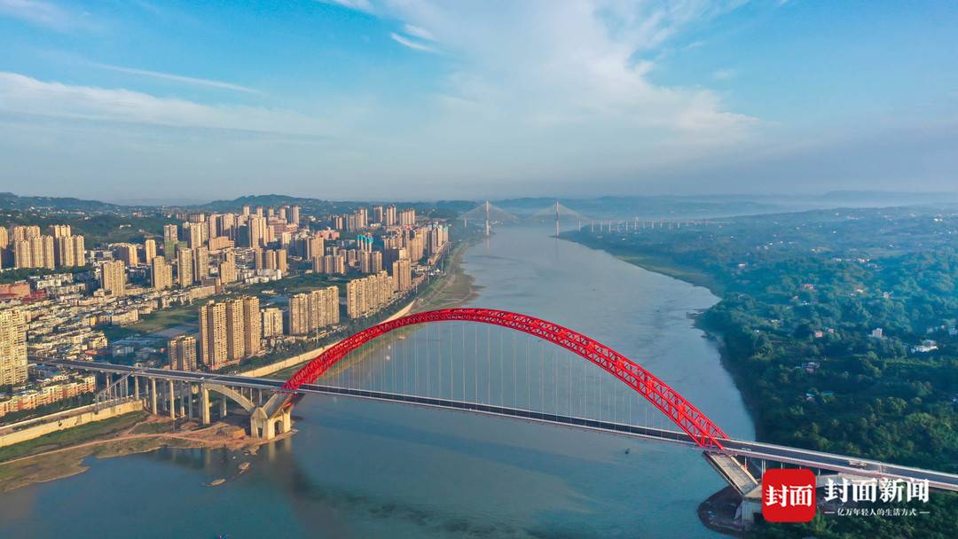 從遠(yuǎn)處看合江長江公路大橋,507米主跨橫跨長江,氣勢恢宏;近處細(xì)看,主跨兩側(cè)還有80.5米的邊跨,如同兩個小翅膀。這種結(jié)構(gòu)被稱為三跨飛燕式拱橋。