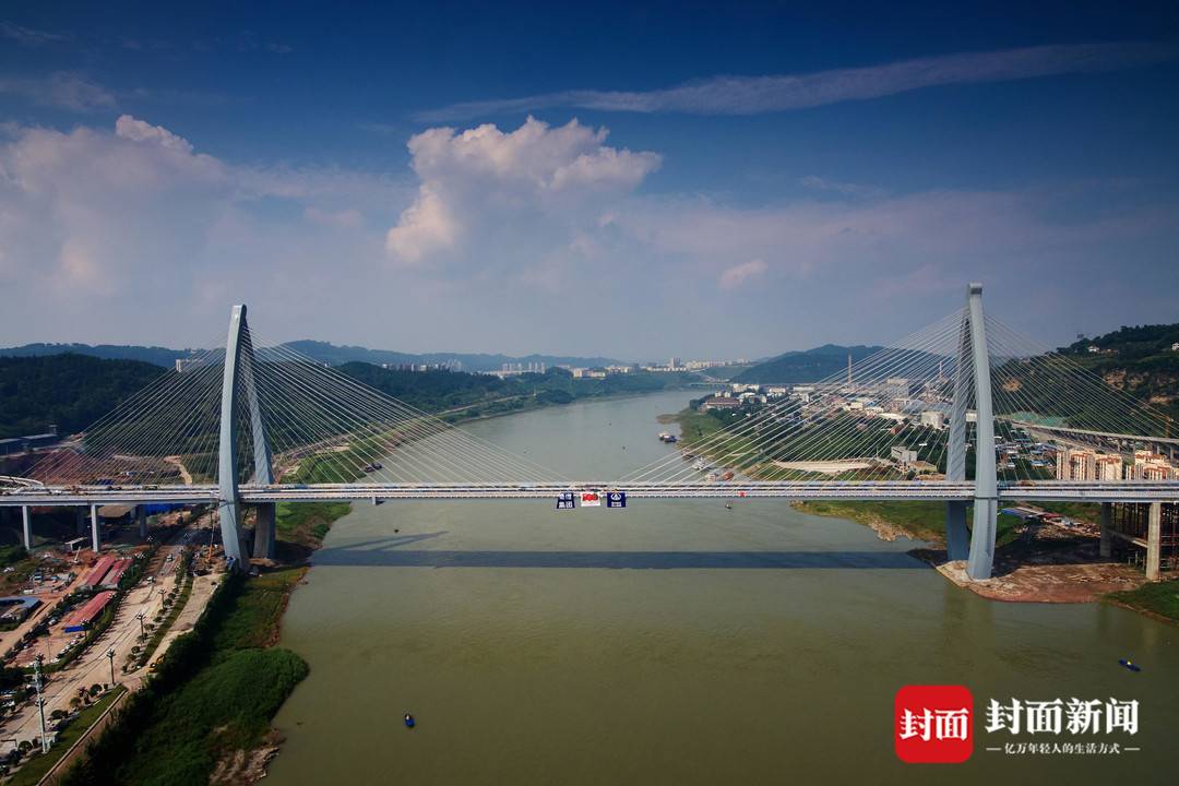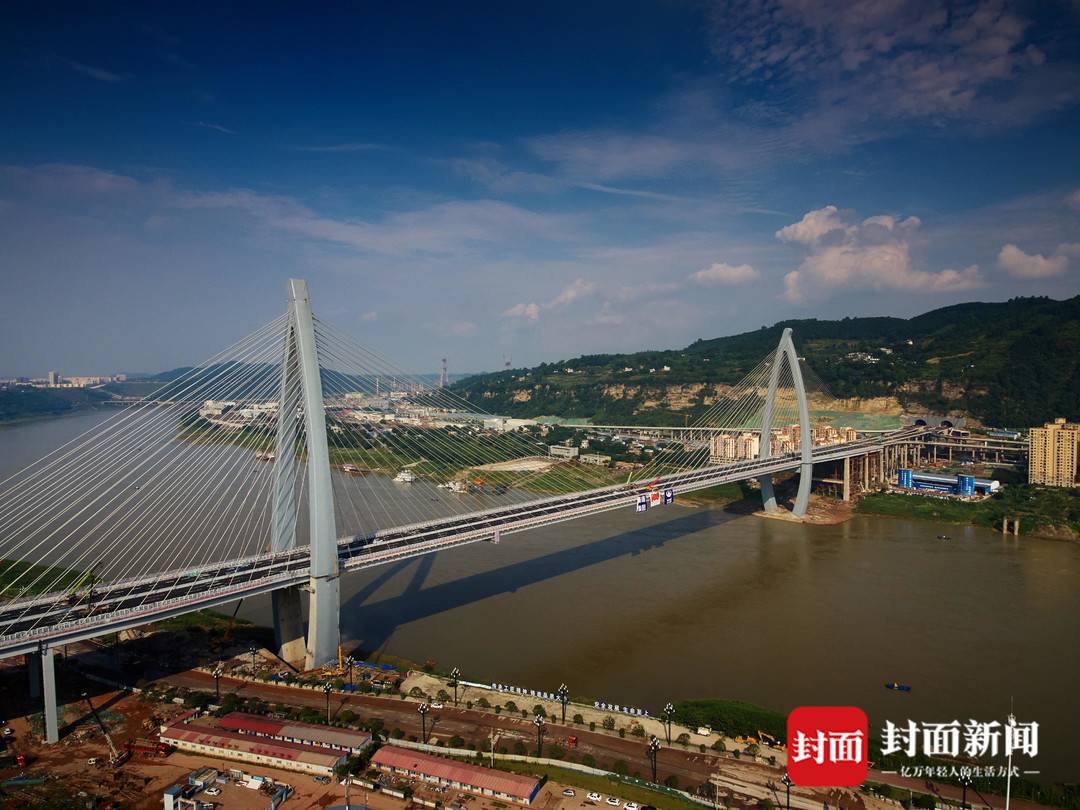 7月1日,四川宜賓鹽坪壩長江大橋正式通車。鹽坪壩長江大橋是一座主跨480米的雙塔雙索面混合式疊合梁斜拉橋,南北岸主塔高182.922米,相當(dāng)于60層樓高,其“魚躍長江”索塔造型為全國首創(chuàng)。大橋通車后,將極大緩解宜賓城區(qū)交通壓力。