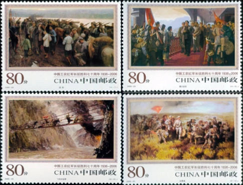 1935年,紅軍長征路上,22位勇士“猛打窮追奪瀘定”,在橋上書寫了英勇無畏的壯麗篇章,紅軍得以通過大渡河。2006年紀念紅軍長征勝利70周年,國家郵政局推出《中國工農(nóng)紅軍長征勝利七十周年》紀念郵票,“飛奪瀘定橋”就是其中一枚。