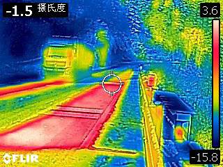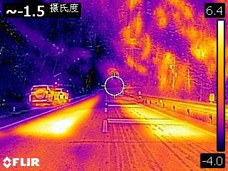 當(dāng)晚7點(diǎn)半,大雪如期而下,熱管埋設(shè)區(qū)域因溫度高,冰雪無(wú)法堆積,其他位置和普通路段均存在較厚積雪,大貨車等各種車輛可從熱管布設(shè)區(qū)域輕松能行。系統(tǒng)運(yùn)行達(dá)到了預(yù)期效果,極大提高了道路冬季安全通行水平。