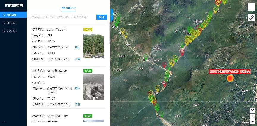 前后方專家組商討提出了應急處置措施及建議,編制完成《“6.1”蘆山6.1級地震公路應急調(diào)查報告》。同時通過災害調(diào)查系統(tǒng),每天及時將公路結(jié)構(gòu)物病害情況以及應急處置措施反饋至抗震救災指揮部,為搶通保通決策部署提供了詳實的基礎(chǔ)資料和科學依據(jù)。