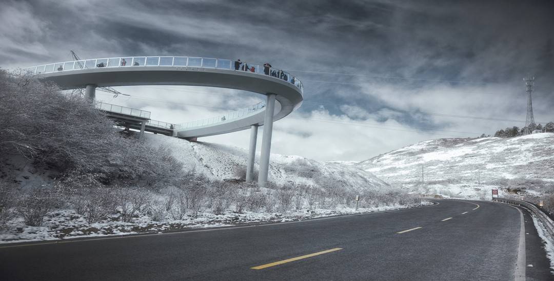 “我們因地制宜打造多個觀景臺。”他介紹,觀景臺的總體原則是簡單配置、集約打造、或?;蛴^。其中,水晶鄉(xiāng)觀景臺,以鋼管桁架形成空中階梯式觀景臺,近觀岷江清流、高原花海,遠觀岷山北峰群山綿延、旭日東升;弓杠嶺埡口觀景臺海拔3525m,是全線制高點,在充分利用原有停車位、步游道基礎上,結合路側邊坡坡地,增設木結構觀景平臺、鋼結構觀景廊橋和生態(tài)廁所,東看山間日出,西觀山頂日落,南有高原雪山,北瞰林海雪冠,美不勝收。