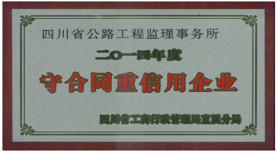 我院監(jiān)理事務(wù)所連續(xù)四年榮獲“守合同重信用企業(yè)”榮譽(yù)稱號(hào)