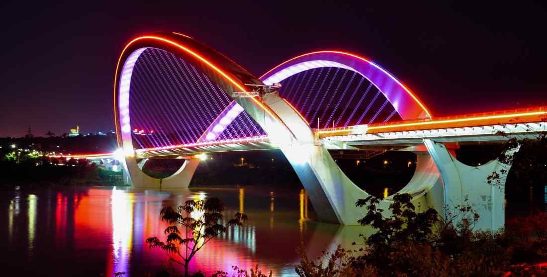 主橋橋跨300米,攻克了“大跨徑、曲線梁、非對(duì)稱、外傾拱橋”架設(shè)難題,已成為南寧標(biāo)志性建筑。